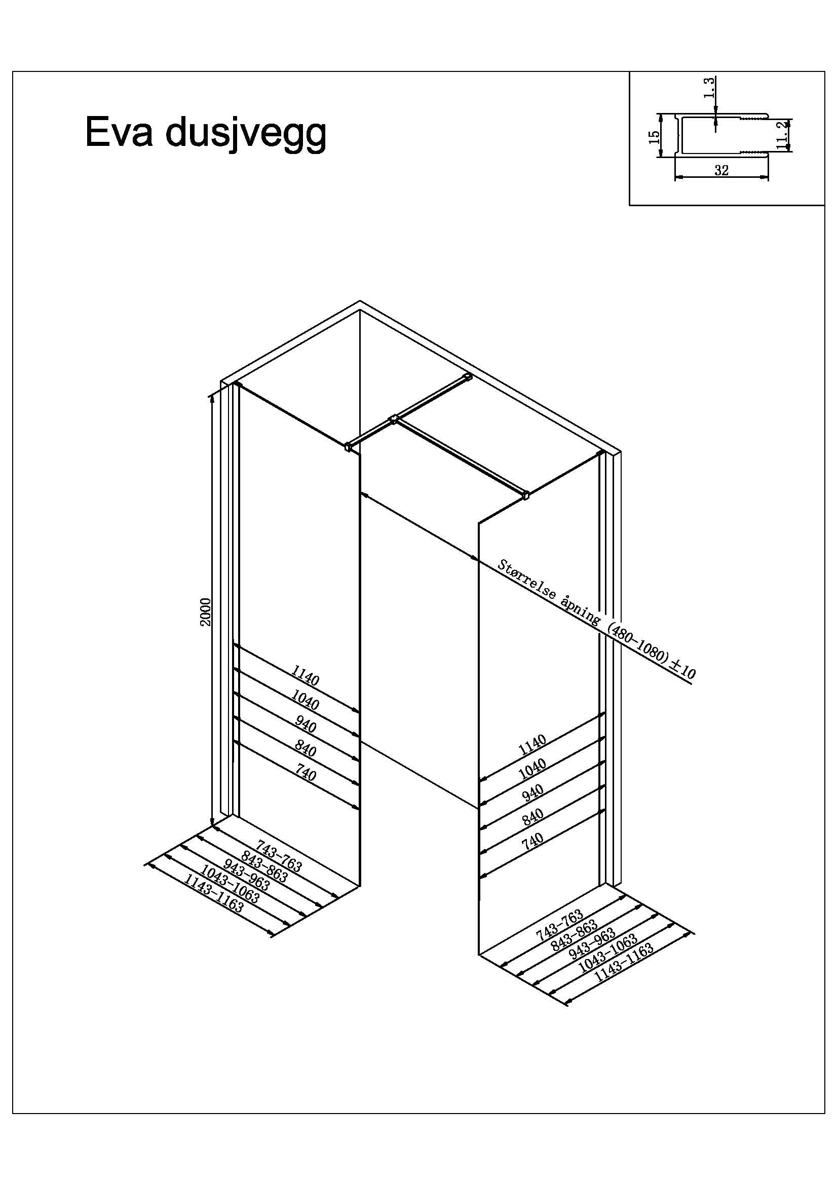 NB! Total max lengde på dusjveggene er ca 5 cm mindre enn oppgitt hovedmål. (Dette pga at disse fastveggene også brukes hos oss i kombinasjon med andre dusjløsninger) Se målskisse.