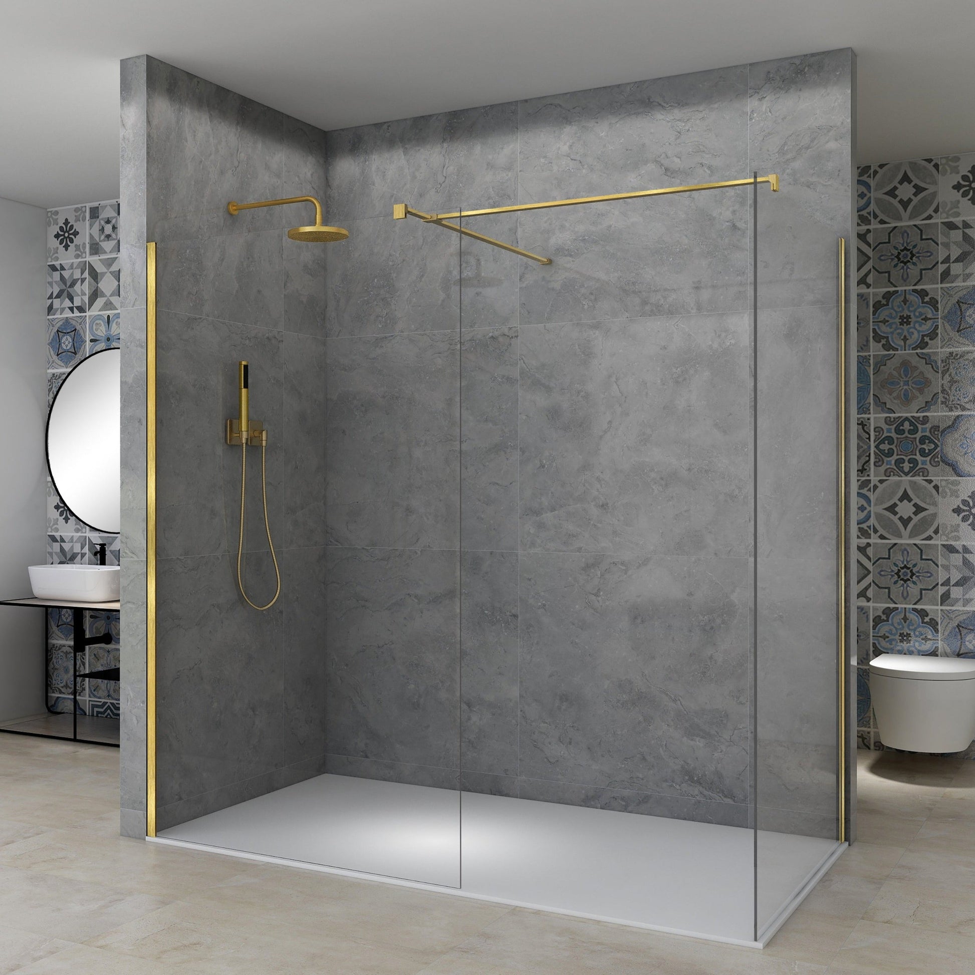 Inkludert: 2 stk dusjvegger i kombinasjon for hjørnemontering, stag og veggprofiler. (Avbildet takdusjsett er ikke en del av dusjløsningen)
