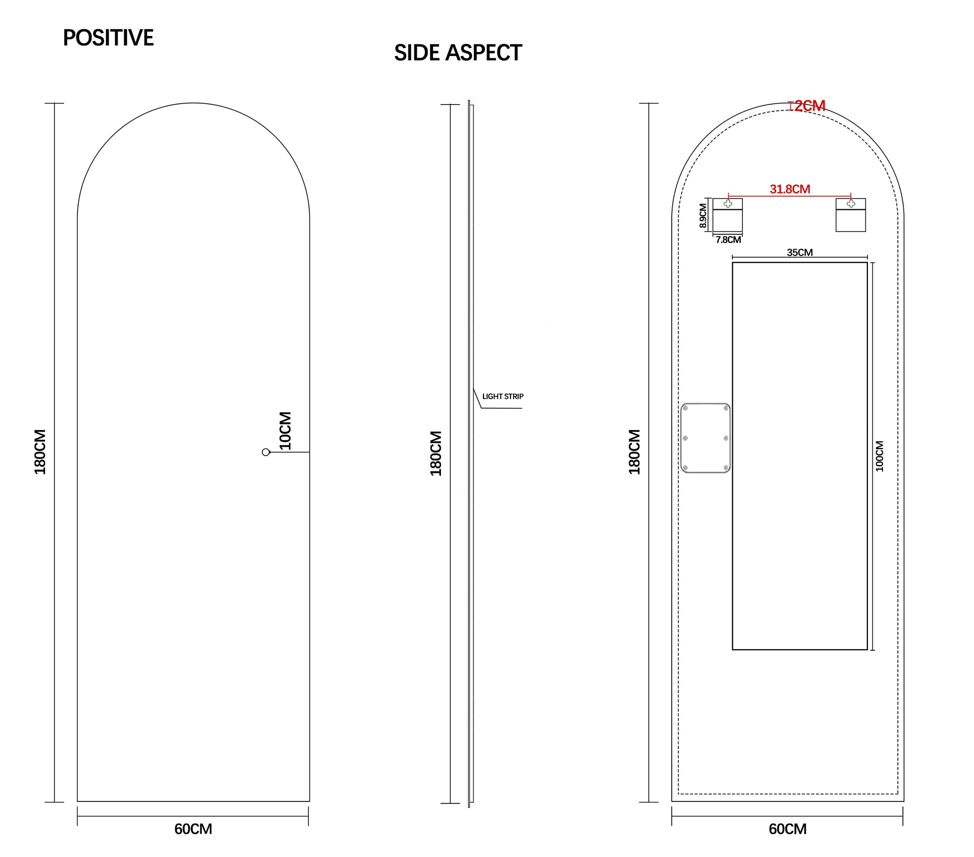 Speilet må ikke kobles til egen dimmebryter. (Vanlig veggbryter uten dimmer går greit)