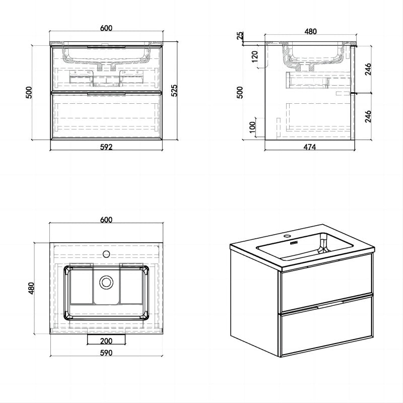 Essence 60 valnøtt m/hvit matt servant