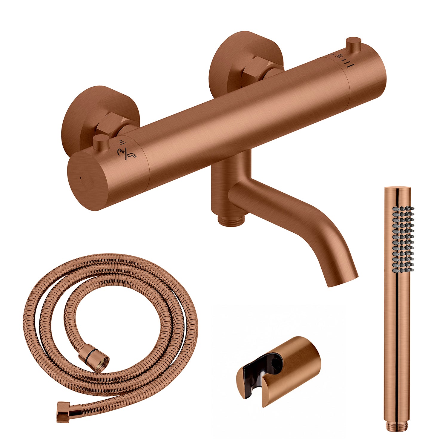 Fusion kararmatur m/slange, hånddusj og veggbrakett, børstet kobber