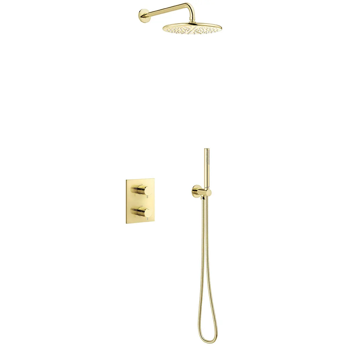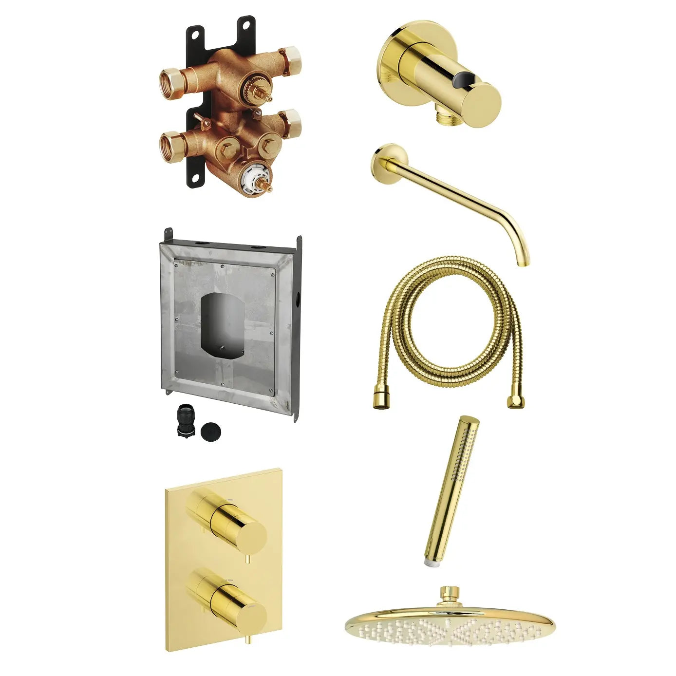 Komplett pakke inkludert dusjrør 400mm, dusjhode Ø250mm, håndusj, 1500mm metallslange med antitwist og veggbrakkett. Med lekkasjesikret boks og innvendig rørtilkobling.