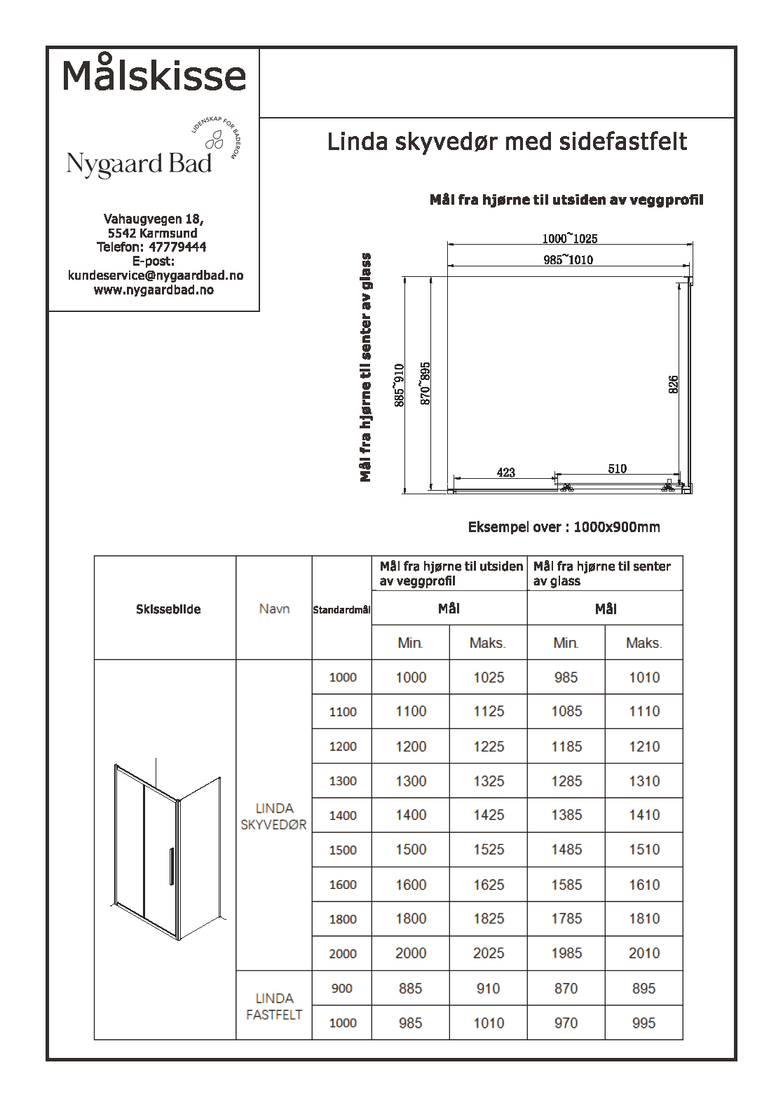 Linda skyvedør for nisje m/krom profiler & klart glass