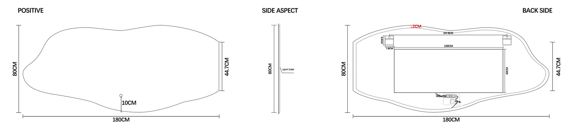 Milano dimbart høyre lysspeil m/antidugg 80x180cm