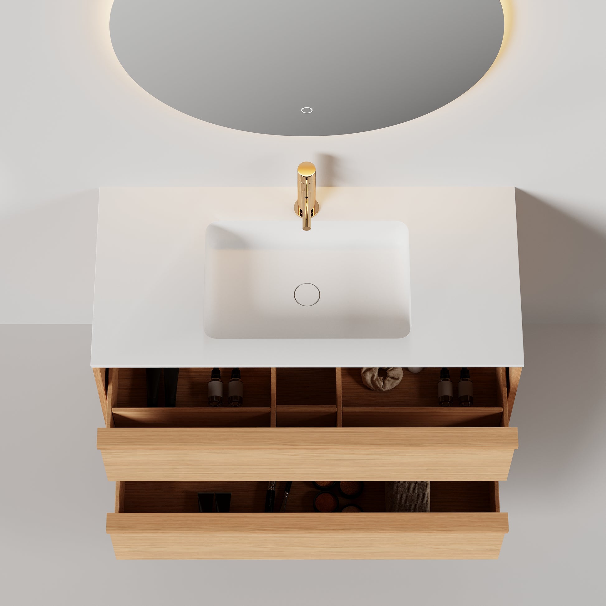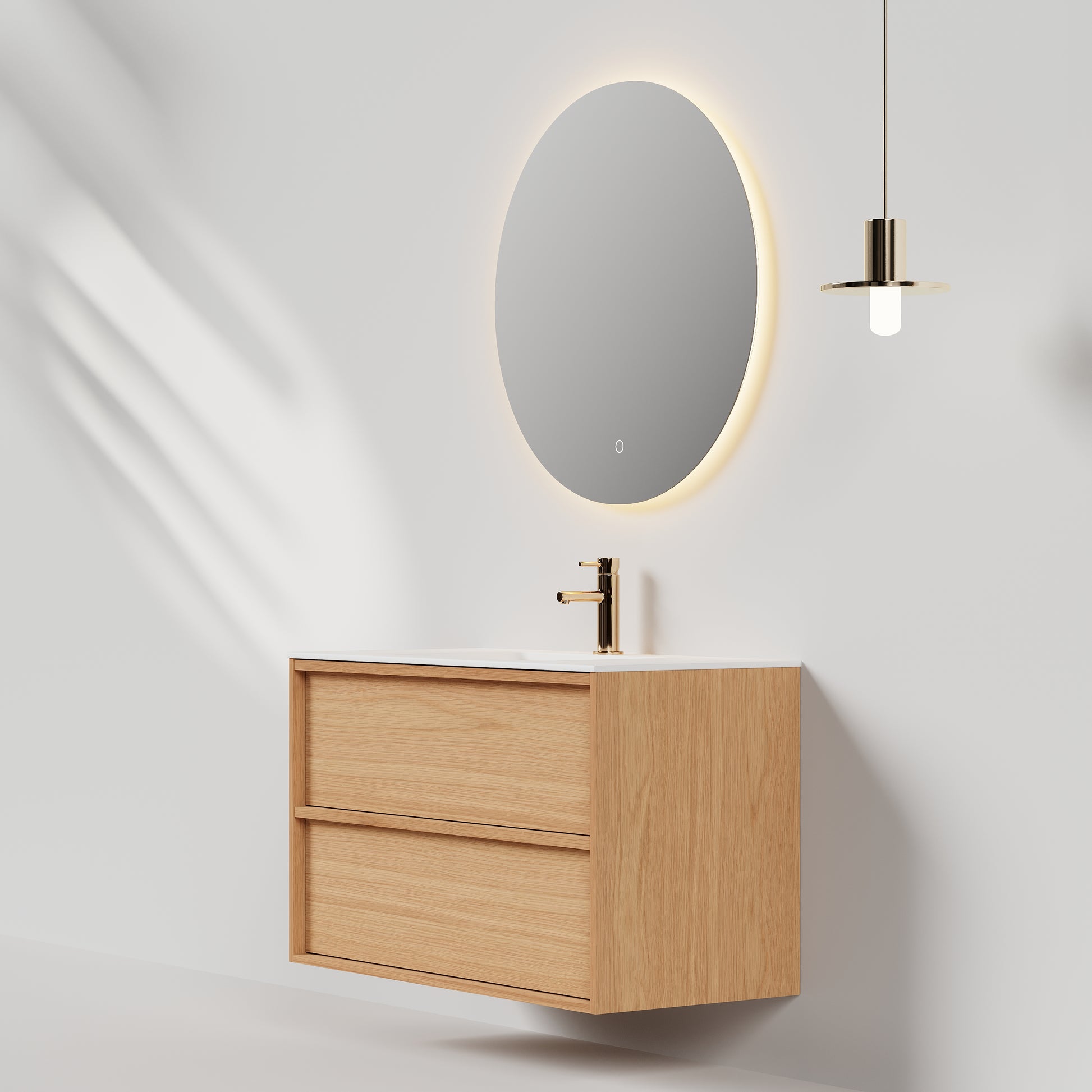 Nordic shape baderomsmøbel 120 cm med ledspeil og høyskap, eik V2