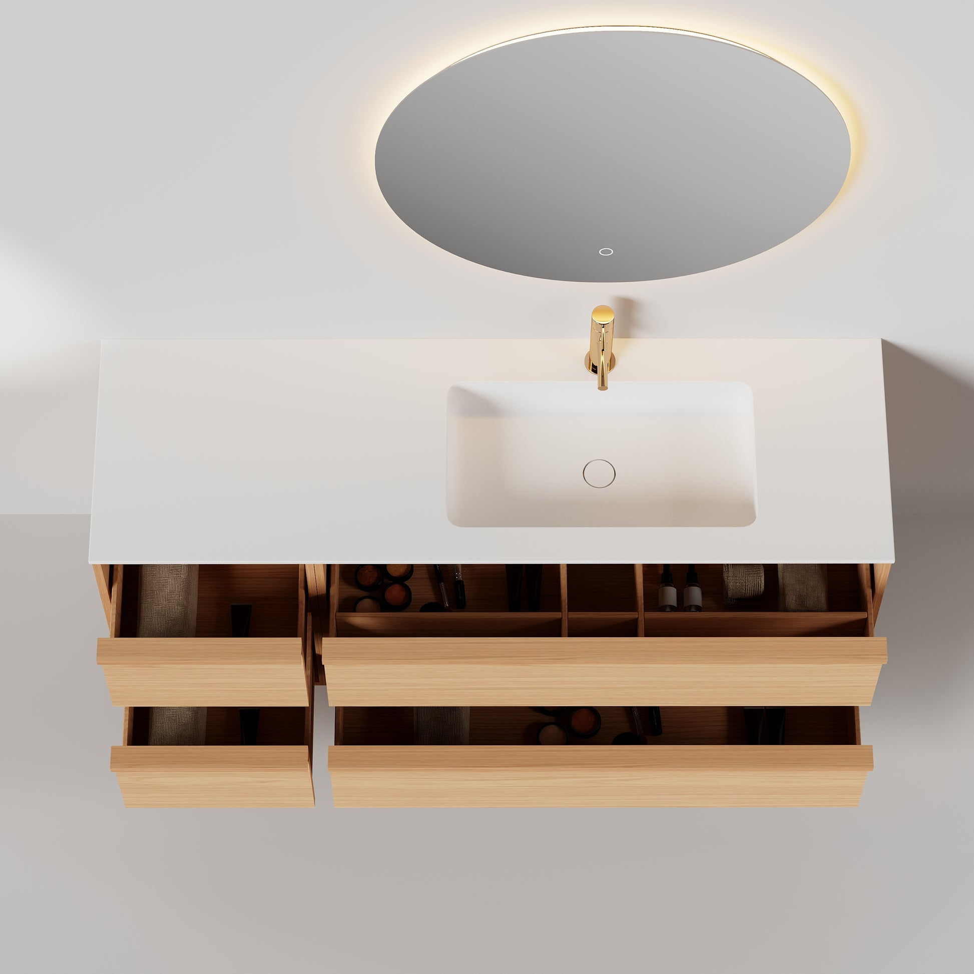 Nordic shape baderomsmøbel 120 cm med ledspeil og høyskap, eik V2