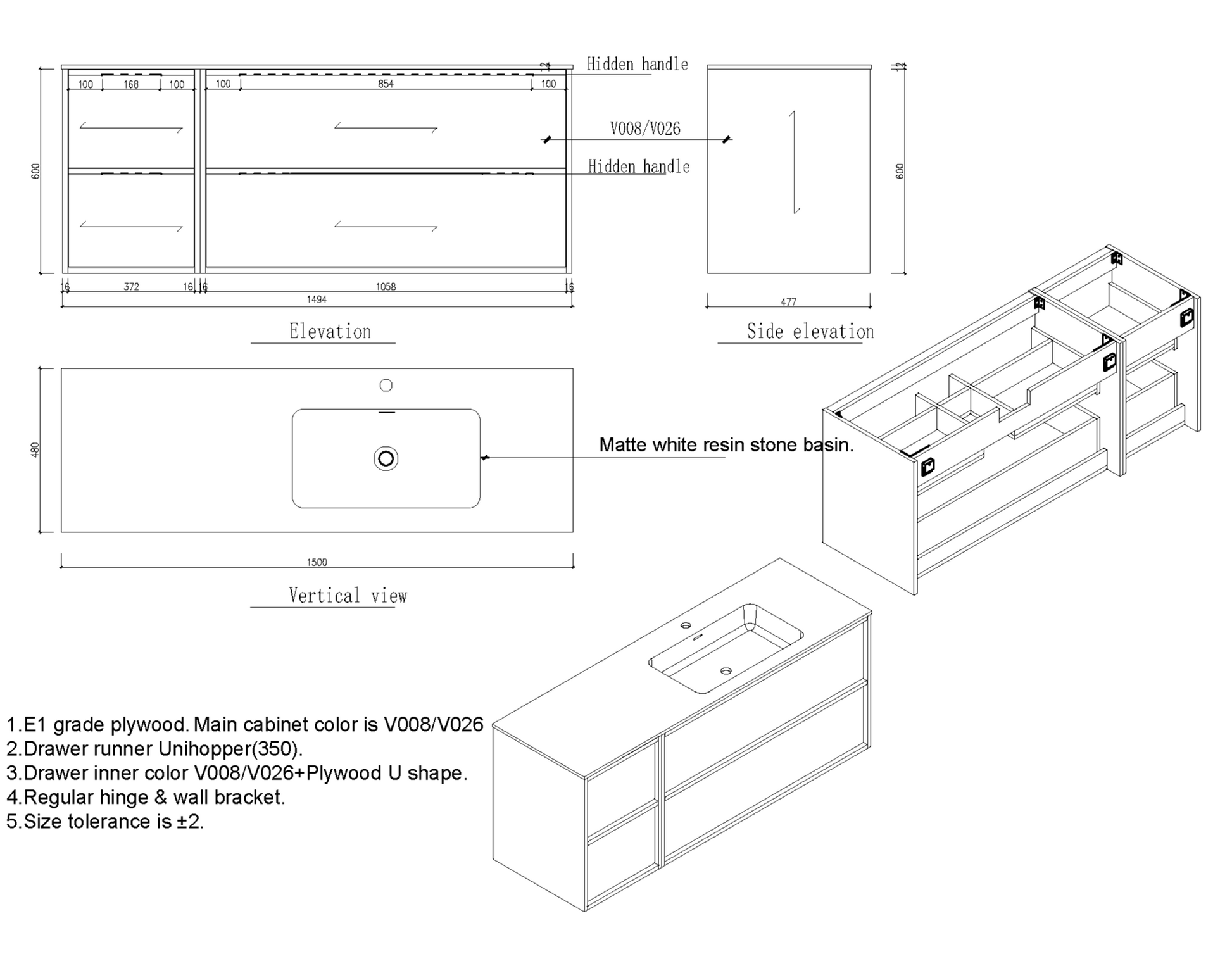 Møbel henges opp som standard på 85 cm fra gulv og opp til servant. Spikerslag anbefales å sette mellom 73-83 cm over ferdig gulv.