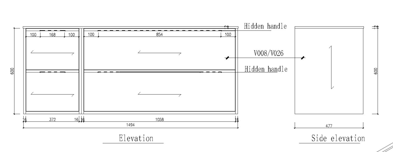 Møbel henges opp som standard på 85 cm fra gulv og opp til servant. Spikerslag anbefales å sette mellom 73-83 cm over ferdig gulv.