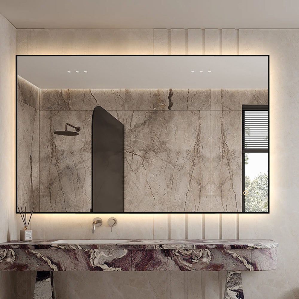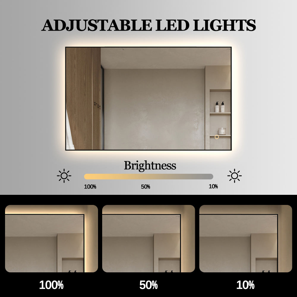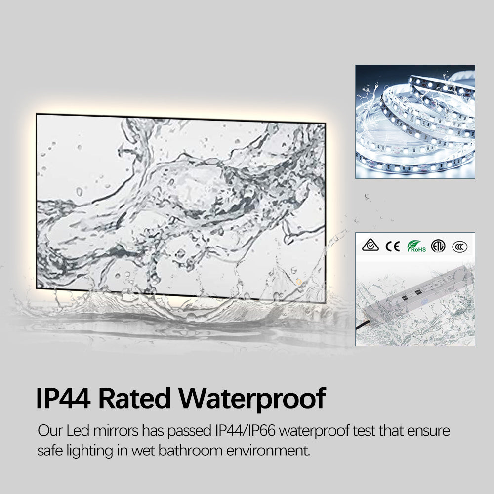 Flott moderne speil med sort diskret ramme med toutch-knapp som du enkelt kan dimme lysstyrken opp og ned med, samt skrue speilet av og på med. Det nette, stilrene uttrykket kombinert med varmt og behagelig lys vil badet ditt få et stort løft. Speilet er selvfølgelig IP44 godkjent for montering på bad. Kobles direkte på veggpunkt.